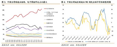 资产方面,电子零组件业、化学原资料业和刻板筑造业是台湾地域较为鲜明的特性行业,格外以台积电为代外的电子资产正在环球占据不小的职位,是以台湾地域的造造业PMI对环球半导体发售有较为鲜明的领先性。