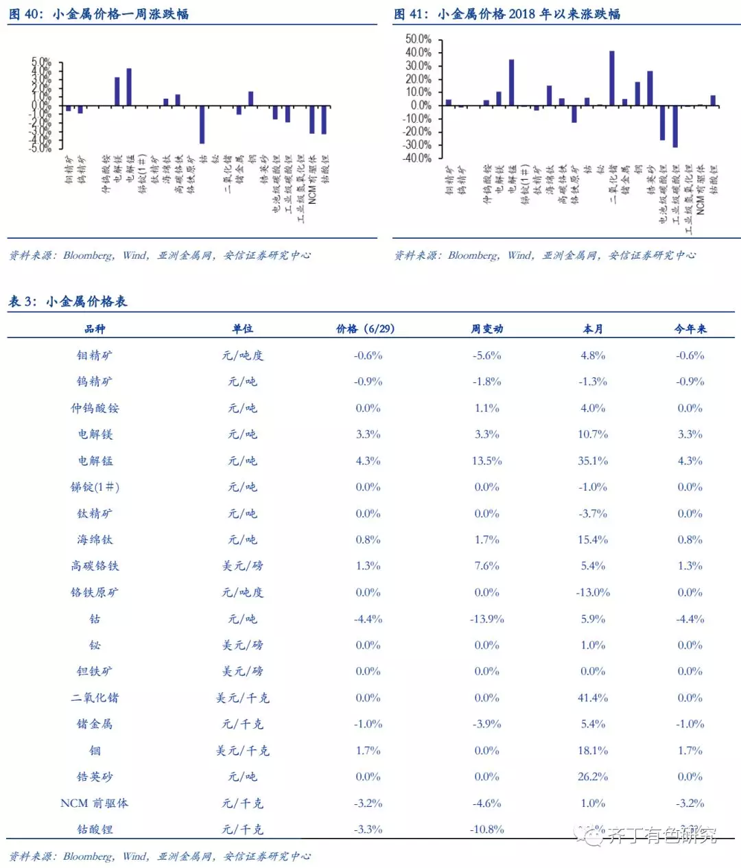 本周,钴产物下跌,刚毅看好钴板块Q3旺季重估。6月29日MB低等第钴报价39.7-41美元/磅,周跌幅为1.6%-0.06%。亚洲金属网硫酸钴报价下跌6.5%,四钴报价本周持平。阅历了价钱大幅下跌之后,钴的下逛库存仍然落正在一个比拟低的程度,新一波钴工业链补库则希望随时启动。本周钴板块涨幅居有色行业子板块首位,板块热度重聚,重估已渐近。一是前期钴板块的下跌,龙头标的PE已被压制到15x-20x。二是缓冲期结果,新能源汽车销量组织浮现明显优化,正在补贴新政的启发下高能量密度等爆款车型将迭出,确实内生需求的赓续上升希望鼓动新一轮补库周期的开启。三是刚果金新矿业法仍然生效,刚果淘钴门槛普及,先行企业筹办护城河进一步加宽。四是高镍低钴的工夫取代历程虽正在加快,但终归仍须要较长年华工夫验证和工业实行,难以逆转钴供需慢慢抽紧大局。
