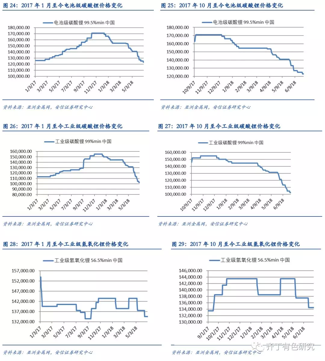 本周工业级碳酸锂下跌2000元/吨(102,500元/吨),电池级氢氧化锂下跌2000元/吨(123,000元/吨)。商场交投相对平淡。研商到18年有用新增产量仍有限,锂供需希望维系紧平均,将来锂供应将慢慢转入过剩。
