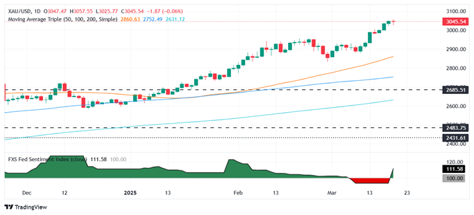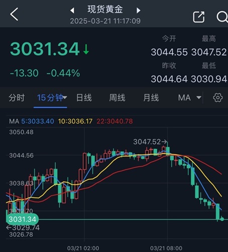 24K99讯 周五(3月21日)亚市盘中,现货黄金短线倏地大幅下挫,目前金价跌至3031美元/盎司相近,较稍早触及的日内高点3047.52美元/盎司回落16美元。FXStreet认识师Christian Borjon Valencia最新撰文,对金价来往举办认识。