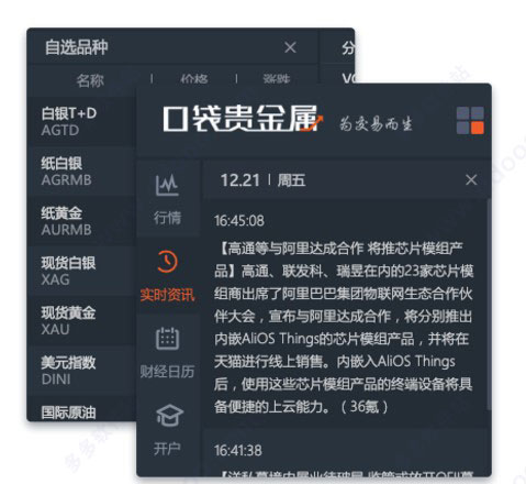 效用版的口袋贵金属增长财经日历倒计时指点,主要财经资讯不再错过。财经资讯集合,模块隔离明晰,便于您更速的获取资讯。