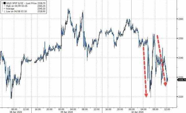 美邦CPI颁布后,现货黄金迟缓跌破2330美元,美股盘前跌至2320美元下方改革日低,日内跌约1.4%,较周二涨至2365美元上方所创的盘中史书高位回落近2%,美股开盘后收窄日内近折半跌幅,美股盘初重上2330美元。