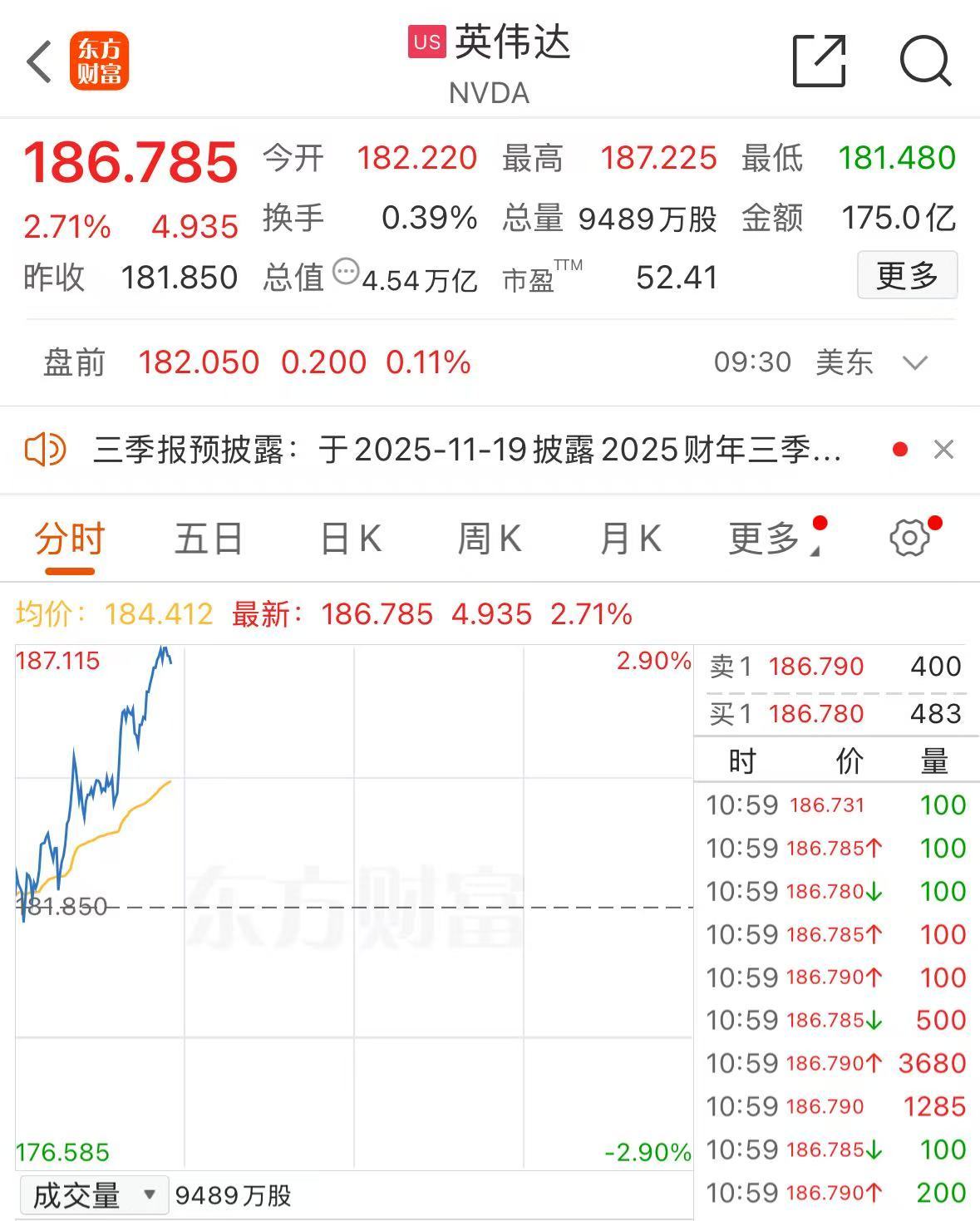 值得提神的是,英伟达盘中拉升涨近3%,股价最高触及187.115美元,再创史乘新高。
