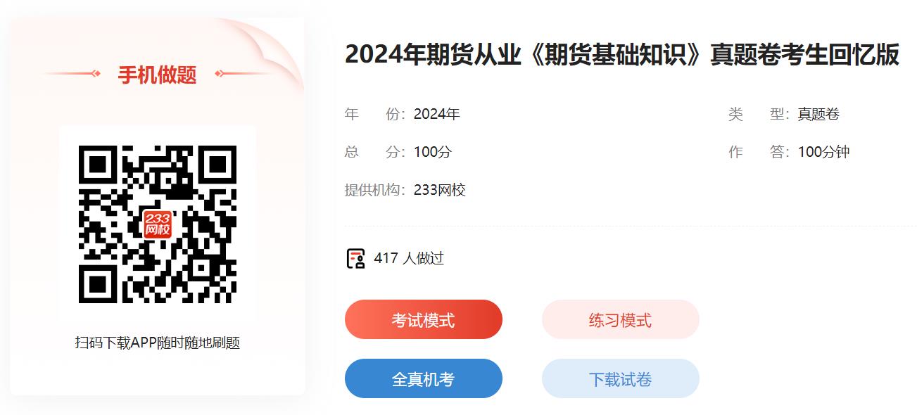 4、233网校APP:233网校APP不但有期货从业题库试题可供正在线做题,还能够进修课程、下载材料,比拟小轨范,233网校APP性能更全,创议下载233网校APP备考!