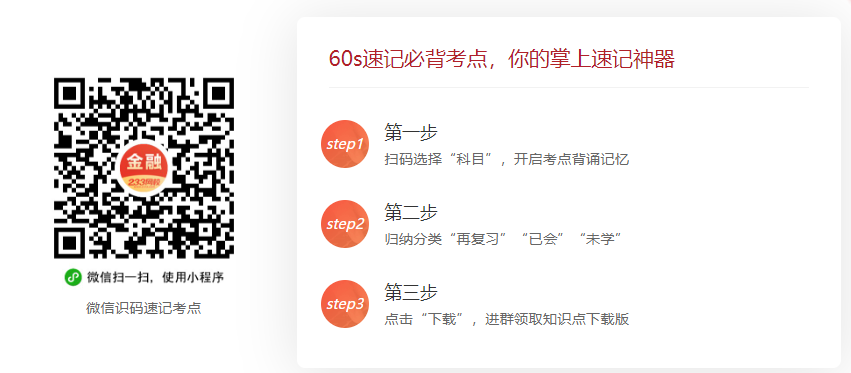 60s考点速记:60s速记必背考点,你的掌上速记神器!期货从业考点速记已上线近三年真题考点、超高频考点、考前押考点等冲刺原料,即刻扫码进入小顺序领取,随时随地背考点,还可能下载PDF版哦~