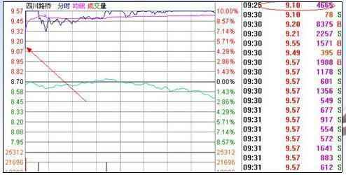 600039,四川道桥,流全体3.04亿,2010年5月31日,聚合竞价时4665手巨量超强高开4.3%,远高于该档的2000手程序,资金注入强度值极高,咱们看看该股的工夫样式: