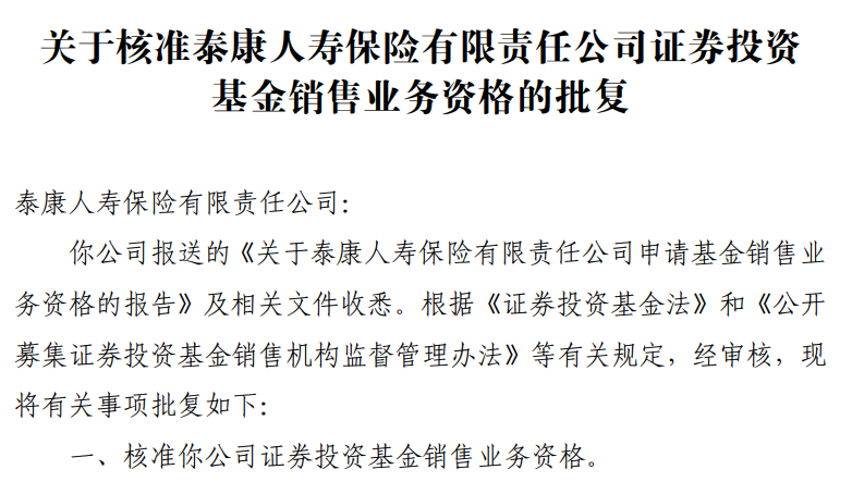 只是目前正在中基协披露的公募基金贩卖机构中,还未查到泰康人寿保障正在列,依照条件,泰康人寿保障还需告终工商变化备案,对筹划边界加添“基金贩卖”生意,然后才可申领筹划证券期货生意许可证。正在得到筹划证券期货生意许可证前,不得对外发展基金贩卖生意。
