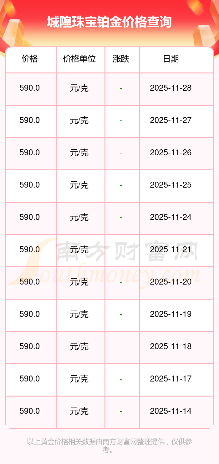 以上数据仅供参考,与外地品牌商、金店、企业及银行业务厅报价有所差别,依产物差别需另附工费,请以本质报价为准。本站对代价等不作任何保障或应承,请自行核实相干实质,因而所惹起的后果与本站无合。
