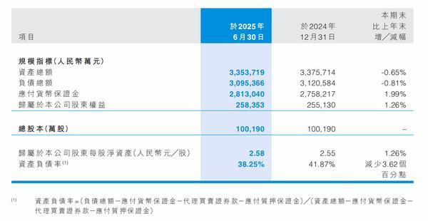 中泰期货外现,截至呈报期末,本集团资产总额为百姓币335.37亿元,较2024腊尾的百姓币337.57亿元低落0.65%。本集团欠债总额为百姓币309.54亿元,较2024腊尾的百姓币312.06亿元低落0.81%。归属于本公司股东权柄为百姓币25.84亿元,较2024腊尾的百姓币25.51亿元伸长1.26%。本集团资产欠债率(个中资产总额与欠债总额均扣除应付泉币包管金、署理生意证券款和应付质押包管金)为38.25%,较2024腊尾的41.87%删除3.62个百分点。呈报期内,本集团资产杰出、财政情景优越。