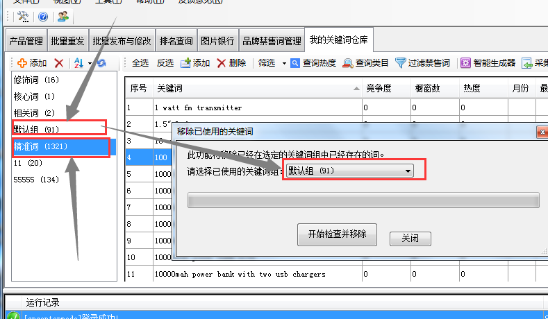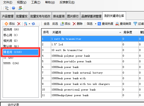点击确定后如下图,从来精准词这个分组是1321个环节词,经历上述操作后,唯有1318个,那么解释去除了三个反复的环节词。