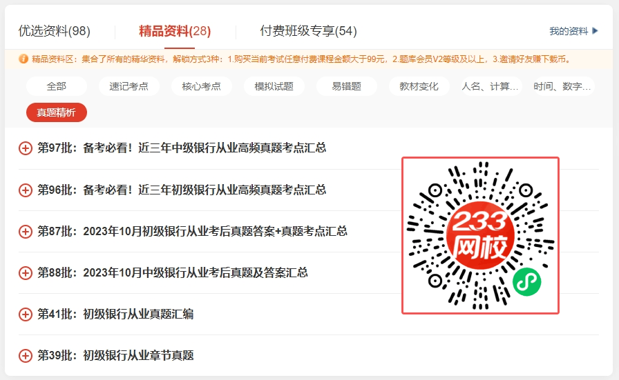 3、冲合速记:2024年银行从业干货札记已上线【冲合速记】【专项打破】等冲刺材料,这些材料由233网校金融讲师团队精编而成,可配套冲刺串讲班、专项打破班研习,现正在可免得费阅读,疾去看看吧!