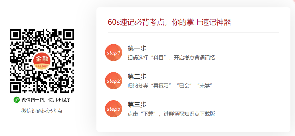 2、考点速记:60s速记必背考点,你的掌上速记神器!2024年银行从业考点速记已上线近三年真题考点、超高频考点、考前押考点等冲刺材料,顷刻扫码进入小圭外领取,随时随地背考点,还可能下载PDF版哦~