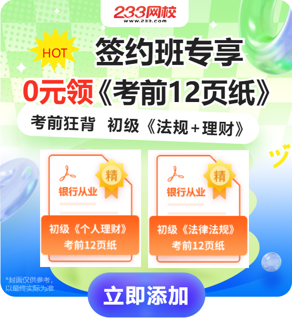 2、材料包下载PDF:233网校教研团队汇总清理出种种银行从业试验材料,助力行家备考研习,银行从业高频考点、新旧教材比较、新教材新增考点、三色札记、公式汇总、考前12页纸、思想导图、研习策动、揣度题案例、易浑浊常识点、狂背手册、数字考点、真题考点等备考材料,再有临考速记、冲合狂背手册、考前必背100句、考前预测30点等冲刺材料已上线,连忙去下载吧!【顷刻进入银行从业材料包】
