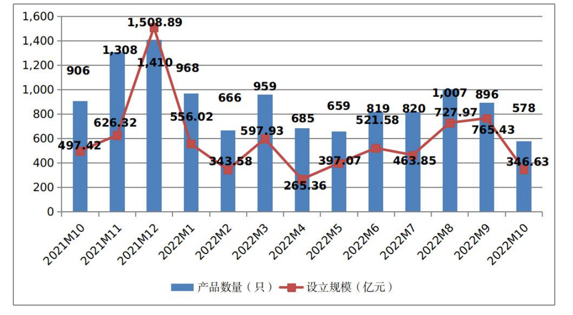 2022年10月,证券期货谋划机构当月共注册私募资管产物578只,设立周围346.63亿元。
