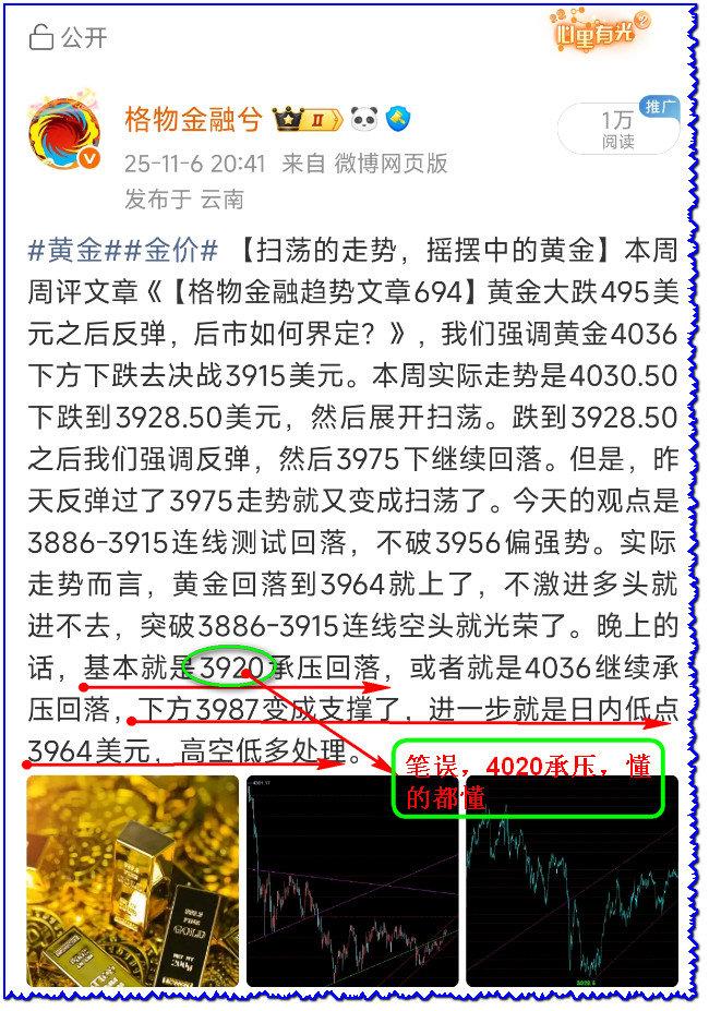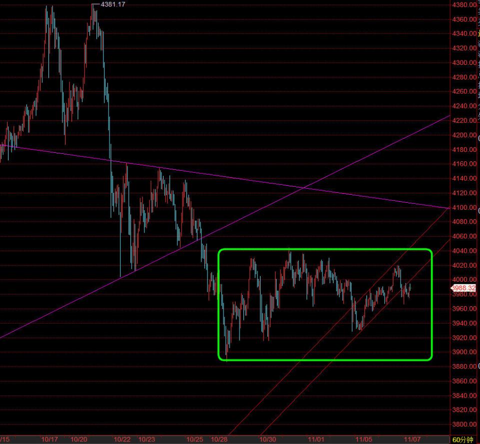 咱们来不断看图,行情目前正在区间中,本日历来是一月一度的非农日,然而,因为美邦政府停摆,数据或者宣布不了。现正在这行情处于反弹节拍中,依据周评的思绪的话,可能强反弹,也可能弱反弹,咱们根本被骗弱反弹处分,起码过去四个买卖日是胜利的处分计划,大凡而言,行情上涨中相对高位盘整行情容易上涨,下探经过中相对低位盘整则容易回落。后面的线也相宜闭怀,进一步即是4036承压回落,下方的线这个处所,这个处所不破依然支持,依然要琢磨以此风控众一次,然新进一步即是3928.50的低点,这个点不破众一次,借使这个点破位,那或许率要测试低点以至破位,两手绸缪把。