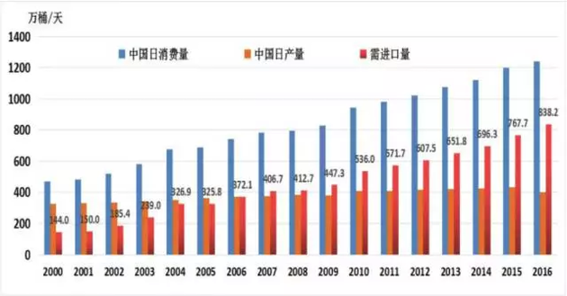 2000年至2011年,中邦石油消费量年均伸长6.5%驾驭,大幅高于环球均匀增速1.2%;尽量正在2011年之后,我邦石油需求增速出手放缓,到2016年降至3.23%,但仍远远高于环球1.6%的增速水准,是原油消费最大需求增量由来邦。2016年,中邦日均进口838.2万桶原油,相当于寰宇第一产油大邦沙特日产量(1023万桶)的八成以上。