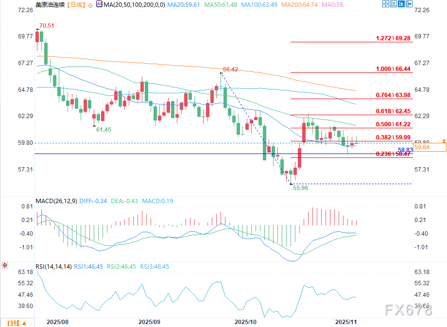 从工夫面来看,原油陷入颠簸僵局。61.48美元左近的50日均线组成强阻力,众头需断然冲破该价位本事掀开上行空间。反之,若跌破58.47美元的斐波那契撑持位,或许激发新一轮扔售。正在上述症结价位映现鲜明冲破前,估计墟市将延续颠簸摒挡、偏向不明的走势。