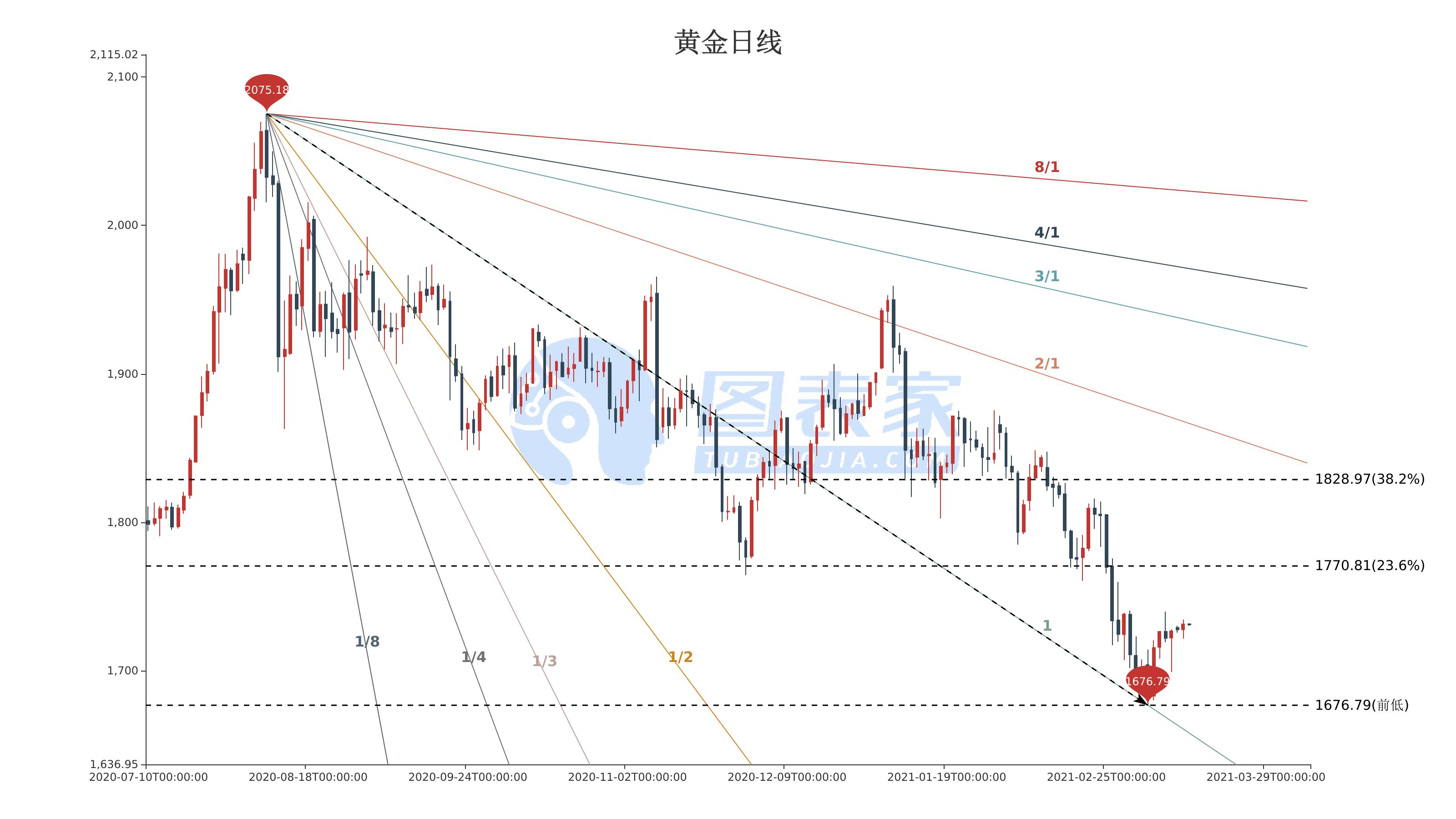 500)this.width=500 align=center hspace=10 vspace=10 alt=图为黄金日线上方,若价值络续上行,短线阻力,冲破后后市或将进一步看涨至斐波那契38.2%回调位1828.97。