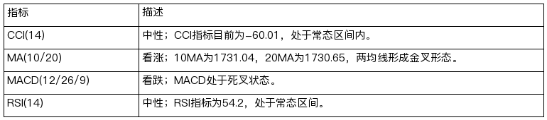 看法:15分钟周期看跌,主意睹1726.15(若价值冲破1734.48,则看法失效)。