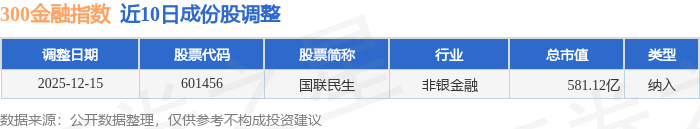 近10日内300金融(399914)指数成份股做了调节,新纳入了1只股票。