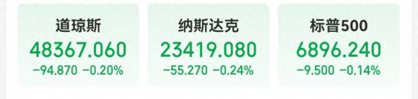 外地功夫12月30日,美股三大指数收盘均小幅下跌,纳指跌0.24%,道指跌0.20%,标普500指数跌0.14%。