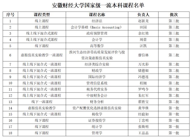 明确各层级课程的建设目标、评价标准与实施路径nymex原油今天,指导部宣布第三批邦度级一流本科课程认定结果,安徽财经大学5门课程告捷入选,此中线门,线门,线门课程获批邦度级一流本科课程,位居安徽省属高校前线。